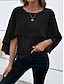 Naisten Paita Pusero Sifonki Topit Yhtenäinen väri Tavallinen Tyylikäs Loma Lyhythihainen V kaula-aukko Pitkät topit Kausaliteetti Valkoinen kuvio Musta + khaki Punastuvan vaaleanpunainen Rubiini