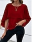 Naisten Ylisuuri T-paita T-paidat Yhtenäinen väri Vintage Tyylikäs Vapaa-aika 3/4 hiha Tiukka pyöreä kaula-aukko Tavalliset topit Päivittäin Bile Valkoinen Punastuvan vaaleanpunainen Rubiini Apila