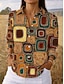 Naisten Paita Tilkkutäkki Napit Painettu Kuvitettu Geometrinen Vintage Päivittäin Tyylikäs Pitkähihainen Paitapuserokaula-aukko Tavalliset topit Päivittäin Loma Bile Khaki Kaikki vuodenajat