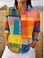 Naisten havaijipaidat virtaavat yläosat vintage rento graafinen geometrinen pitkät yläosat pitkät hihat kaulus tilkkutöitä napit printti muotoilu lomamatka työ päivittäin vaaleansininen kesä