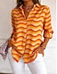 Naisille tarkoitettu paita pellavan kaltainen hengittävä kevyt napitettava tunika kaulus pitkät hihat graafinen geometrinen vintage trooppinen tyylikäs työ päivittäinen painatus keltainen oranssi