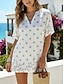 Naisten Paita Pusero Tilkkutäkki Napit Kuvitettu Loma Vintage Tyylikäs Lyhythihainen Paitapuserokaula-aukko Tavalliset topit Päivittäin Pyhäpäivä Bile Valkoinen Oliivi Kesä Kevät