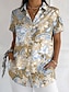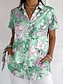 Naisten shirt pellavanomainen hengittävä kevyt nappikaulustunika pitkähiha kukkagraafinen vintage päivittäinen tyylikäs lomakäyttö painatus valkoinen vaaleanvihreä vaaleanruskea sininen khaki