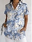 Naisten Paita Rento paita Rantapaita Pusero Painettu Kukka Kuvitettu Böömi Tyylikäs Moderni Lyhythihainen V kaula-aukko Tavalliset topit Päivittäin Pyhäpäivä Bile Sininen Valkoinen Vaalean sininen