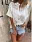 Naisten paita pellavamainen hengittävä kevyt napitettava tunika paita kauluksella pitkähiha graafinen pilkku vintage trooppinen tyylikäs päivittäinen loma menossa printti valkoinen vaaleanpunainen