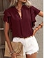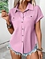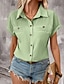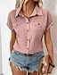 Naisten Paita Pusero Rypytetty Napit Tavallinen Tyylikäs Lyhythihainen Paitapuserokaula-aukko Tavalliset topit Päivittäin Työ Pyhäpäivä Vaalean vihreä Punastuvan vaaleanpunainen Purppura Oranssi Apila