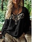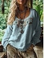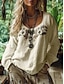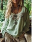 Naisten Boho Pusero Pellavan kaltainen Hengittävä Kevyt Kukka Graafinen Elegantti Bohemia Vintage Pitkähihainen V-kaula-aukko Tavalliset Paita Päivittäin Loma Patches Napit Printti Keltainen Vihreä