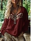 Naisten Boho paita Pusero Rypytetty Kukka Kuvitettu Tyylikäs Vintage Pitkähihainen V kaula-aukko Tavalliset topit Päivittäin Pyhäpäivä Bile Sininen Viini Armeijan vihreä Rubiini Vaalea purppura Kevät
