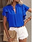 Naisten Paita Pusero Sifonki Topit Röyhelöpaita Röyhelö Tavallinen Tyylikäs Perus Klassinen Lyhythihainen V kaula-aukko Tavalliset topit Päivittäin Pyhäpäivä Bile Musta Valkoinen Viini Tumman vihre