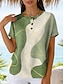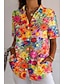 Naisten pitkähihaisten paidan napitettava pusero graafinen 3D päivittäinen tyylikäs lyhythihainen paita kaulukset normaalit yläosat jokapäiväisesti keltainen sininen vihreä kesä kevät