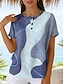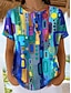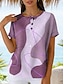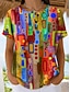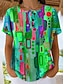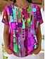 Naisten Paita Kuvitettu Geometrinen Raidoitettu Vintage Trooppinen Tyylikäs Lyhythihainen Paitapuserokaula-aukko Tavalliset topit Päivittäin salvain vihreä Punastuvan vaaleanpunainen Purppura Oranssi