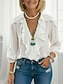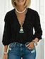 Naisten Paita Pusero Puuvillainen paita Rypytetty Napit Yhtenäinen väri Tyylikäs Klassinen Moderni 3/4 hiha V kaula-aukko Tavalliset topit Päivittäin Pyhäpäivä Bile Musta Valkoinen Vaalean vihre
