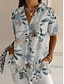 Naisten Paita Napita paita Rento paita Kesän yläosat Napit Painettu Kukka Kuvitettu Vintage Tyylikäs Moderni Lyhythihainen Paitapuserokaula-aukko Pitkät topit Päivittäin Vaalean vihreä Vaalea
