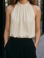 Naisten t-paitapusero, yksivärinen, tyylikäs muoti, hihaton, korkeakauluksinen, normaali topit, päivittäin, bile, viikonloppu, tilkkutäkki, kesä, kevät