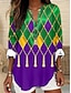 Mardi Gras naisille tarkoitettu paitapusero pellavan kaltainen hengittävä kevyt graafinen vintage päivittäinen tyylikäs pitkät hihat V-pääntie pitkät yläosat päivittäinen loma painatus valkoinen