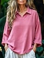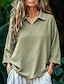 Naisten paitapusero puuvillasekoite yksivärinen vintage tyylikäs moderni pitkähihainen paitakaulus normaali topit päivittäin juhla bile valkoinen pinkki taivaansininen vihreä khaki kevät syksy