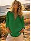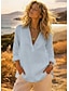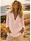 Naisten 100% puuvillaa Paitapusero yksivärinen Vintage tyylikäs moderni Pitkähihainen V-aukkoinen Normaali topit Päivittäin Pyhäpäivä Bile Valkoinen Pinkki Taivaansininen Vihreä Kevät Syksy