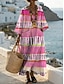 Naisten maksimekko pellavajäljitelmäpaitamekko vapaa-ajan mekko muoti moderni päivittäin loma bile löysä istuvuus raidallinen pitkähihainen v-aukkoinen sininen musta pinkki punainen kevät syksy