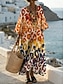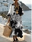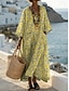 Naisten midi mekko V-kaula-aukko pitkähihaisella kaftaanilla kevyt löysä malli A-linjainen mekko rento boho juhla ulkona kukkagraafinen pitkähiha V-kaula-aukko harmaa vihreä tumma pinkki valkoinen