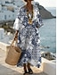 naisten maksimekko sinivalkoiset kukat loma kesämekko a-linjainen mekko loma rento boheemi ranta juhla löysä istuvuus kukkakuvio graafinen geometrinen pitkähihainen v-aukkoinen sininen musta keltainen pinkki kesä kevät
