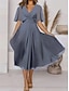 Naisten midimekko kesämekko paitamekko kesämekko loma rento boheemi päivittäin pyhä juhla väljä istuvuus yksivärinen lyhythihainen kaulus sininen harmaa pinkki musta keltainen kesä kevät
