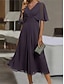 Naisten pellavajäljitelmämekko vapaa-ajan mekko moderni päivittäinen ulko- loma normaali istuvuus yksivärinen lyhythihainen v-aukkoinen purppura turkoosi musta pinkki kesä kevät