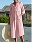 Naisten midimekko, pellavainen, paitamekko, vapaa-ajan mekko, muoti, ulko-, juhla, normaali istuvuus, yksivärinen, pitkähihainen, pyöreä pääntie, vaaleanvihreä, pinkki, harmaa, kesä