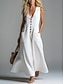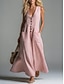 Naisten maksimekko pellavajäljitelmää varten Väljä mekko Kesämekko Vapaa-aika Normaali istuvuus Yksivärinen Hihaton V-pääntie Musta Valkoinen Pinkki Aprikoosi Kesä