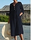Naisten pitkähihainen puuvillainen pellavapaitamekko, pitkähihainen mekko, kesämekko, rento, päivittäinen väljä istuvuus, yksivärinen, 3/4-hiha, kaulus, musta, pinkki, taivaansininen, vihreä, kesä, kevät