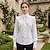 Naisten Paita Pusero Pitsi Yhtenäinen väri Tyylikäs Päivittäin Retro / vintage Pitkähihainen Paitapuserokaula-aukko Tavalliset topit Päivittäin Pyhäpäivä Bile Valkoinen Kevät Syksy