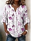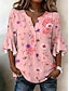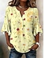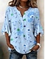 Naisten Pusero Röyhelö Painettu Kukka Kuvitettu Loma Päivittäin Retro / vintage 3/4 hiha V kaula-aukko Tavalliset topit Kausaliteetti Päivittäin Pyhäpäivä Sininen Keltainen Punastuvan vaaleanpunainen