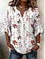 Naisten Paita Pusero Röyhelö Painettu Kukka Kuvitettu Loma Päivittäin Retro / vintage Puolihiha V kaula-aukko Pitkät topit Päivittäin Pyhäpäivä Bile Valkoinen Armeijan vihreä Apila Kesä Kevät Syksy