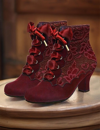 Naisten viktoriaaniset edvardiaaniset pitsisaappaat rusetilla - 1890-1910-luvuilta inspiroituneet goottilaiset korkokengät syksyn teekutsuille, cosplay- ja vintage-asuihin