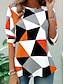 Naisten T-paita Painettu Kuvitettu Geometria Vintage Tyylikäs Vapaa-aika Pitkähihainen Tiukka pyöreä kaula-aukko Pitkät topit Päivittäin Sininen Oranssi Harmaa Syksy Talvi