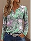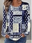 Naisten T-paita Napit Painettu Geometrinen Abstrakti Päivittäin Perus Pitkähihainen Paksukauluksinen V kaula-aukko Tavalliset topit Kausaliteetti Viikonloppu Sininen Rubiini Laivaston sininen Taivaan