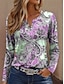 Naisten T-paita Painettu Kuvitettu Geometria Vintage Muoti Moderni Pitkähihainen Lovitettu kaula Tavalliset topit Päivittäin Viikonloppu Sininen Keltainen Purppura Apila Kesä Kevät