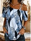 Naisten T-paita Epäsymmetrinen Kuvitettu Geometrinen Paisley-kuvio Vintage Trooppinen Havaijilainen Lyhythihainen Epäsymmetrinen kaula Pitkät topit Ranta häät Päivittäin Urheilu Sininen Punastuvan