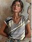 Naisten T-paita Painettu Ombre Kuvitettu Geometrinen Tyylikäs Klassinen Vapaa-aika Lyhythihainen V kaula-aukko Tavalliset topit Päivittäin Ruskea Kesä Kevät