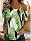 Naisten T-paita Painettu Geometrinen Kasvit Vapaa-aika Lyhythihainen Pyöreä kaula-aukko Tavalliset topit Päivittäin Rubiini Kesä