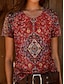Naisten T-paita Napit Painettu Kuvitettu Geometrinen Böömi Vintage Tyylikäs Lyhythihainen V kaula-aukko Tavalliset topit Päivittäin Bile Viikonloppu Sininen Valkoinen Viini Rubiini Laivaston sininen