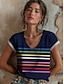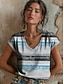 Naisten T-paita Painettu Raidoitettu Kuvitettu Geometrinen Böömi Vintage Tyylikäs Lyhythihainen V kaula-aukko Tavalliset topit Päivittäin Sininen Punastuvan vaaleanpunainen Vaalea purppura Apila Kes
