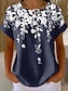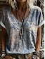 Naisten T-paita Painettu Geometrinen Tyylikäs Vapaa-aika Lyhythihainen V kaula-aukko Tavalliset topit Päivittäin Pölyinen sininen Kesä