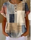 Naisten T-paita Painettu Rintapainikkeet Geometrinen Tyylikäs Moderni Vapaa-aika Lyhythihainen Henley Tavalliset topit Päivittäin Khaki Kesä Kevät