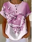 Naisten T-paita Painettu Rintapainikkeet Geometrinen Tyylikäs Moderni Vapaa-aika Lyhythihainen Henley Tavalliset topit Päivittäin Sininen Rubiini Purppura Apila Kesä Kevät