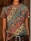 Naisten T-paita Painettu Kuvitettu Geometrinen Geometria Vintage Tyylikäs Klassinen Lyhythihainen Tiukka pyöreä kaula-aukko Pyöreä kaula-aukko Tavalliset topit Päivittäin Sininen Kesä Kevät