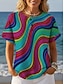 Naisten T-paita Väripaletti Painettu Kuvitettu Geometrinen valtameri Vintage Muoti Tyylikäs Lyhythihainen Tiukka pyöreä kaula-aukko Tavalliset topit Päivittäin Sininen Valkoinen Rubiini Laivaston