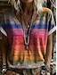 Naisten T-paita Painettu Rintapainikkeet Kuvitettu Geometrinen Raidoitettu Tyylikäs Klassinen Moderni Lyhythihainen Henley Tavalliset topit Päivittäin Sateenkaari Kesä Kevät