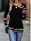Naisten T-paita Painettu Rintapainikkeet Kuvitettu Geometrinen Raidoitettu Tyylikäs Klassinen Moderni Lyhythihainen Henley Tavalliset topit Päivittäin Sateenkaari Kesä Kevät