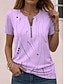 Naisten T-paita Vetoketju Kuvitettu Geometria Tyylikäs Klassinen Vapaa-aika Lyhythihainen Tiukka pyöreä kaula-aukko Tavalliset topit Päivittäin Viikonloppu Sininen Punastuvan vaaleanpunainen Apila