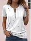 Naisten T-paita Vetoketju Painettu Kuvitettu Geometrinen Muoti Moderni Vapaa-aika Lyhythihainen V kaula-aukko Pitkät topit Päivittäin Bile Viikonloppu Harmaa Kesä Kevät